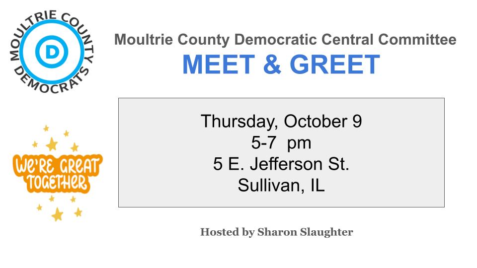 We will meet on July 9, at 6 p.m., at the Elizabeth Titus Library in Sullivan. Paul Davis, who is running against Mary Miller for Illinois 15, will be speaking to us. We would like to have a large photo opportunity to demonstrate there is large support for a Democratic candidate in our area to …