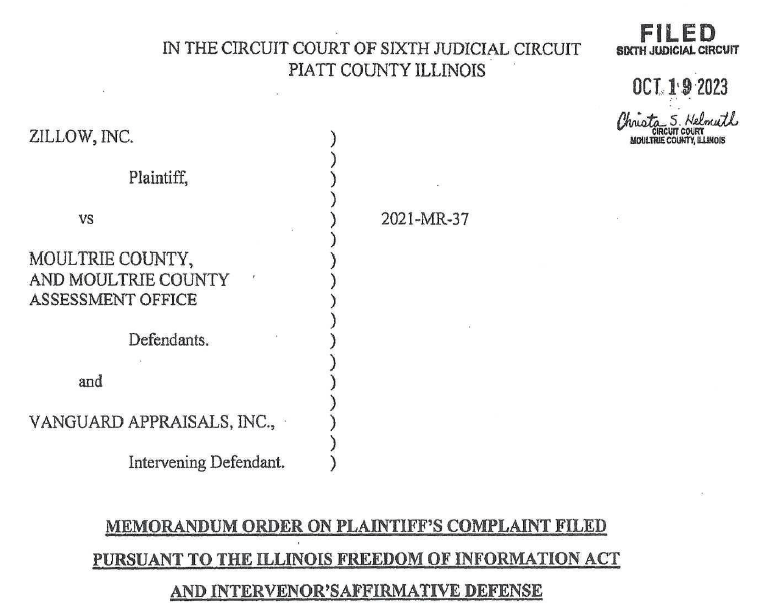 In recent legal proceedings, Moultrie County Supervisor of Assessments, Ms. Barringer, faced allegations of violating the Freedom of Information Act (FOIA) in response to a request from Zillow, Inc. The FOIA violation, stemming from Zillow's request made on August 26, 2021, and resubmitted on September 15, 2021, will potentially cost Moultrie County taxpayers over $50,000.